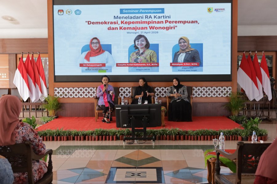 WONOGIRI – Selasa (21/4), Komisi Pemilihan Umum (KPU) Kabupaten Wonogiri menggelar kegiatan pendidikan pemilih melalui Seminar Perempuan sebagai upaya meningkatkan partisipasi politik dan pendidikan demokrasi di kalangan perempuan. Berlangsung di Pendopo Rumah Dinas Bupati Wonogiri ini diikuti oleh pengurus PKK tingkat kabupaten dan kecamatan, perwakilan Gabungan Organisasi Wanita (GOW), serta berbagai organisasi perempuan di Kabupaten Wonogiri, kegiatan ini dirangkaikan dengan penandatanganan Nota kesepahaman antara KPU Kabupaten Wonogiri dengan Pemkab Wonogiri, STABN Raden Wijaya dan STAI Mulia Astuti dalam bidang peningkatan demokrasi di Wonogiri. Mengusung tema “Meneladani RA Kartini: Demokrasi, Kepemimpinan Perempuan, dan Kemajuan Wonogiri”, seminar ini menjadi momentum untuk menguatkan peran strategis perempuan dalam kehidupan demokrasi, sekaligus memperingati nilai-nilai perjuangan emansipasi perempuan. Menghadirkan narasumber inspiratif, yaitu Anggota DPD RI Casytha Arriwi Kathmandu, SE, M. Fin, serta Anggota KPU Provinsi Jawa Tengah Divisi Sosdiklih Parmas Akmaliyah, S.Pd.I., M.Pd. Jalannya diskusi dipandu oleh moderator Dr. Situ Asih, M.I.Kom. Kehadiran para narasumber diharapkan mampu memberikan perspektif yang luas serta motivasi bagi perempuan untuk semakin aktif dalam ruang-ruang demokrasi. Dalam sambutannya, Ketua KPU Wonogiri menegaskan pemilu dan pilkada tidak hanya sebatas proses prosedural, tetapi harus menghadirkan demokrasi yang substantif. Ia menyoroti masih adanya tantangan berupa penurunan partisipasi dan meningkatnya suara tidak sah. “Tidak cukup hanya hadir di TPS, tetapi bagaimana pemilih memahami dan menggunakan hak pilihnya secara berkualitas,” ujarnya. Bupati Wonogiri mengapresiasi kegiatan ini dan menekankan bahwa keterlibatan perempuan sangat penting dalam mewujudkan pembangunan yang inklusif dan berkeadilan. Ketua TP PKK Wonogiri, Sri Rahayuningsih Setyo Sukarno, menambahkan bahwa perempuan adalah agen perubahan sekaligus pendidik pertama dalam keluarga yang berperan membangun kesadaran demokrasi sejak dini. Dalam sesi materi, Anggota DPD RI Casytha Arriwi Kathmandu menekankan pentingnya keterlibatan perempuan dalam pengambilan kebijakan. Di keluarga, perempuan berperan besar dalam membentuk karakter generasi penerus melalui penanaman nilai-nilai sejak dini. “Perempuan harus berani mengambil peran, tidak hanya sebagai pemilih tetapi juga sebagai pengambil keputusan. Keterwakilan perempuan penting agar kebijakan yang dihasilkan lebih inklusif,” ujarnya. Sementara itu, Anggota KPU Provinsi Jawa Tengah Divisi Sosdiklih Parmas Akmaliyah menyoroti pentingnya literasi politik di kalangan perempuan. “Perempuan memiliki tingkat partisipasi yang tinggi, tetapi perlu diimbangi dengan pemahaman politik yang baik agar dapat menjadi pemilih yang cerdas dan kritis.Semangat kesetaraan yang diperjuangkan perempuan harus terus hidup dalam demokrasi. Karena dari perempuan yang berdaya, lahir keputusan yang lebih representatif,” jelasnya. Melalui seminar ini, KPU Wonogiri mendorong peningkatan literasi politik perempuan agar mampu menjadi pemilih yang cerdas, kritis, dan partisipatif. Selain itu, kegiatan ini juga menjadi ruang diskusi bagi peserta untuk bertukar pandangan mengenai tantangan dan peluang perempuan dalam pembangunan daerah. KPU Wonogiri berharap keterlibatan perempuan dalam proses demokrasi terus meningkat, sehingga mampu mendukung terwujudnya pembangunan yang inklusif dan berkeadilan di Kabupaten Wonogiri. Sebagai bagian dari upaya berkelanjutan, KPU Wonogiri akan terus menghadirkan program pendidikan pemilih yang menyasar berbagai segmen masyarakat guna memperkuat kualitas demokrasi (AA) ....