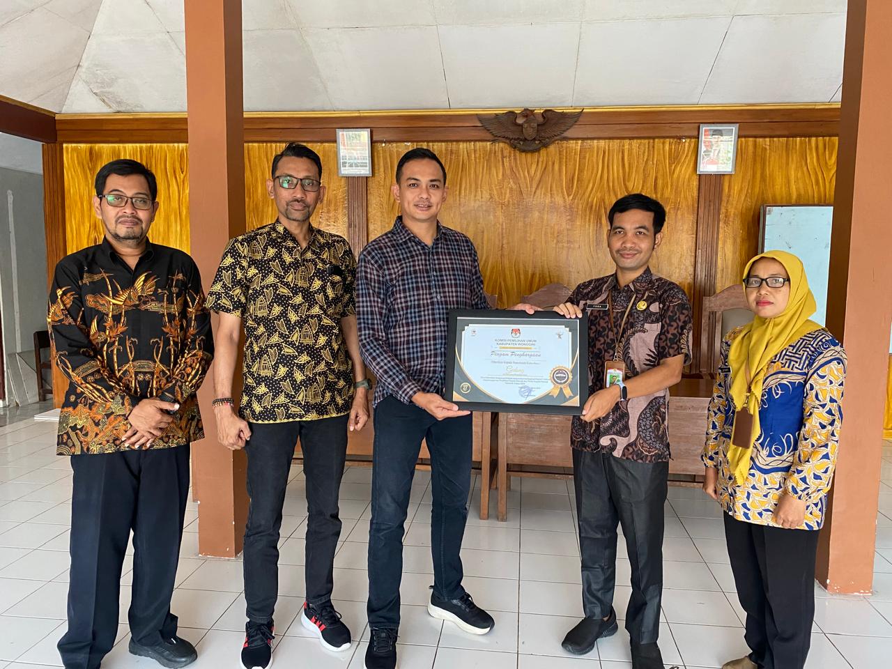 Hargai Peran Desa, KPU Wonogiri Serahkan Penghargaan Tingkat Partisipasi Tertinggi Dalam Pemilihan Serentak Tahun 2024