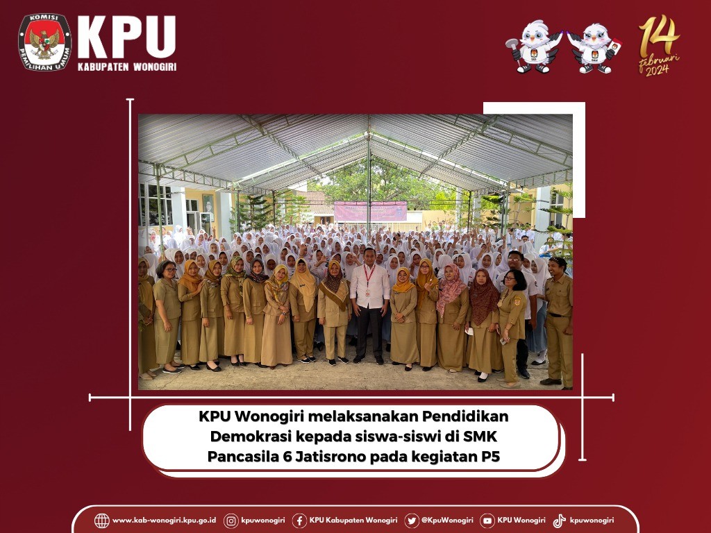 Hai #sedulurpemilih KPU Kabupaten Wonogiri melaksanakan sosialisasi Kepemiluan dalam Projek Penguatan Profil Pelajar Pancasila di SMK Pancasila 6 Jatisrono.