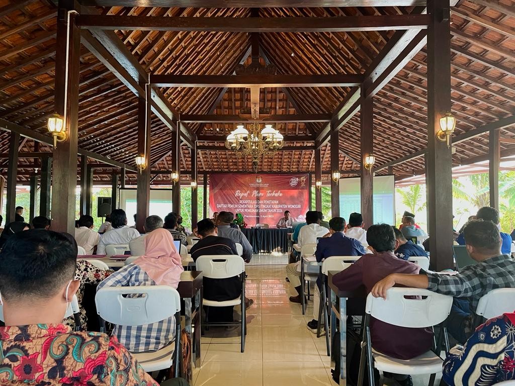 Bertempat di Aula KPU Kabupaten Wonogiri, Senin, 26 Juni 2023, KPU Kabupaten Wonogiri menyelenggarakan Focus Group Discussion/ Diskusi Terfokus Penyiapan Rumusan Kebijakan Pemungutan Dan Perhitungan Suara Dalam Pemilu Serentak Tahun 2024. Kegiatan ini bertujuan untuk menjaring masukan masyarakat terhadap draft peraturan Komisi Pemilihan Umum tentang Pemungutan dan Penghitungan Suara. Hadir sebagai undangan perwakilan Partai Politik, Kesbangpol, Polres, Akademisi, LSM, Pengurus OSIS dan Ormas di wilayah Kabupaten Wonogiri. Diskusi dibuka oleh Ketua KPU Kabupaten Wonogiri, Toto Sihsetyo Adi. Dalam sambutannya, Toto mengungkapkan bahwa tahapan pemungutan suara adalah tahapan krusial, sehingga perlu disiapkan sedini mungkin. Terdapat 4 (empat) isu strategis nasional yakni penggunaan aplikasi SIREKAP, penyederhanaan nomenklatur formulir, penghitungan suara dengan sistem paralel dan mekanisme penulisan salinan hasil pemungutan dan penghitungan suara. FGD yang di moderatori oleh Kepala Subbagian Teknis Penyelenggaraan Pemilu, Nursahid, menghasilkan 9 (sembilan) rumusan daftar inventaris masalah. Salah satu isu yang paling banyak dibahas adalah soal layanan hak pilih terhadap lanjut usia. “Daftar Inventaris Masalah ini kami usulkan ke KPU RI sebagai banhan penyempurnaan draft Peraturan KPU tentang pemungutan dan penghitungan suara”, ujar Wahyu Nurjanah, Ketua Divisi Teknis Penyelenggaraan Pemilu, KPU Kabupaten Wonogiri.