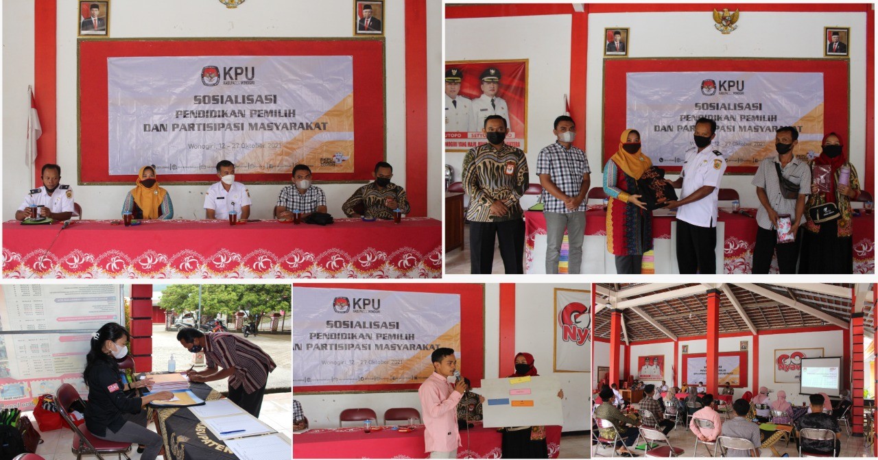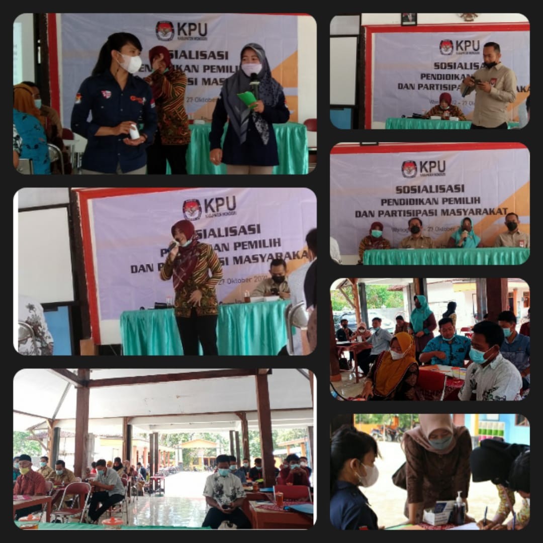 Wonogiri, 27 Oktober 2021 – Komisi Pemilihan Umum Kabupaten kembali mengadakan sosialisasi Pendidikan Pemilih dan Partisipasi Masyarakat pada tanggal 27 Oktober 2021 untuk masyarakat di Desa Lemahbang, Kecamatan Kismantoro, Kabupaten Wonogiri. Melalui kegiatan ini masyarakat dari berbagai elemen masyarakat antusias mengikuti sosialisasi. Hadir dalam kegiatan ini Komisioner KPU Kabupaten Wonogiri antara lain Ibu Augustina Puspa Dewi, S.E., MM Bapak Dwi Prasetyo S.Pd.I, dan Bapak Pradika Harsanto, S.IP., MM serta dihadiri oleh Camat Bapak Andika Krisnayana, AP., M.Si didampingi forkopimcam dan Lurah Lemahbang Bapak Sugito S.Sos.