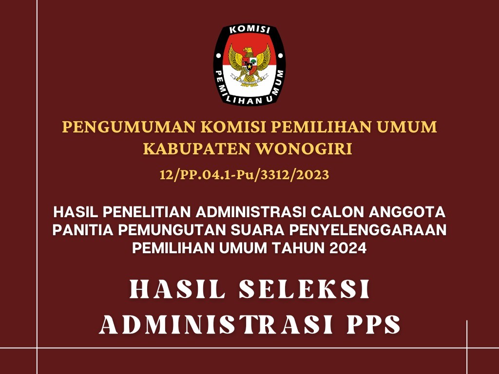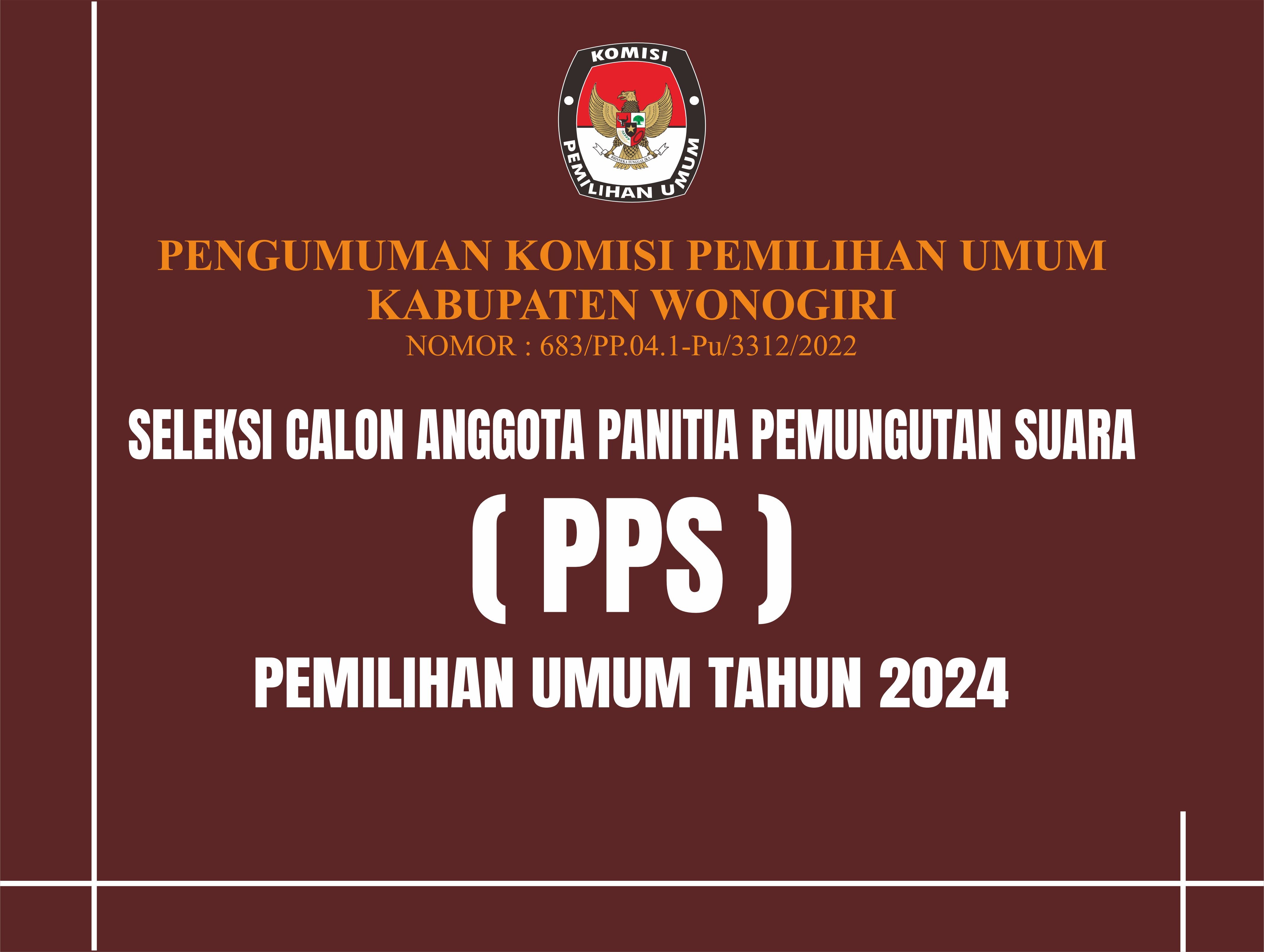 PENGUMUMAN SELEKSI CALON ANGGOTA PANITIA PEMUNGUTAN SUARA (PPS) PEMILIHAN UMUM TAHUN 2024 Sabtu, 17 Desember 2022 23:59 2164 No Nama File Download 1 Pengumuman Pendaftaran PPS 2 Surat Pendaftaran PPS 3 Surat Pernyataan PPS 4 Lampiran DRH Baca Selengkapnya