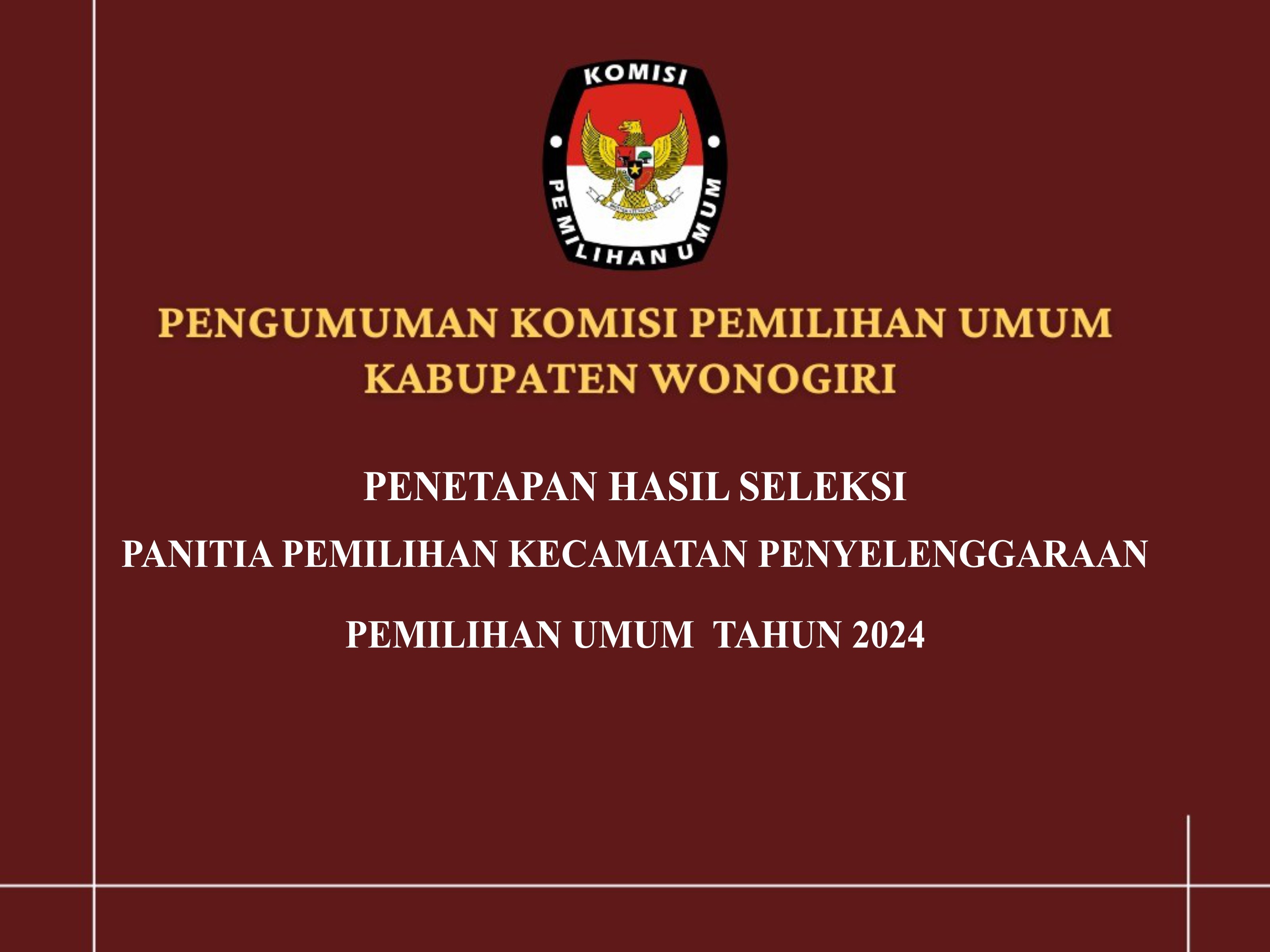 PENETAPAN HASIL SELEKSI PANITIA PEMILIHAN KECAMATAN (PPK) PEMILU TAHUN 2024 Jumat, 16 Desember 2022 12:00 1256 Pengumuman Penetapan Hasil Seleksi PPK Pemilu Tahun 2024 Baca Selengkapnya