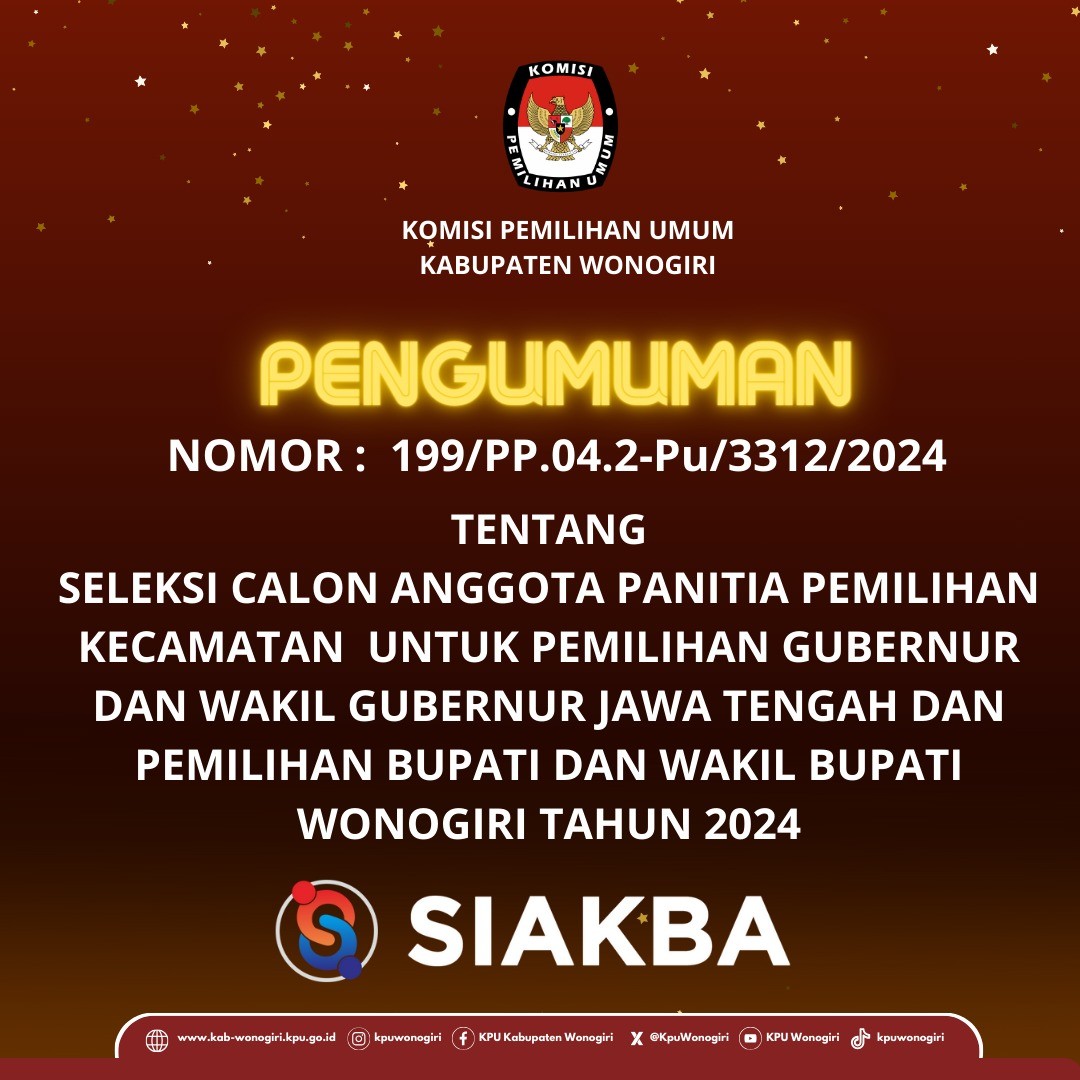 Pengumuman Lomba Cipta Jingle dan Maskot Pemilihan Bupati dan Wakil Bupati Wonogiri Tahun 2024